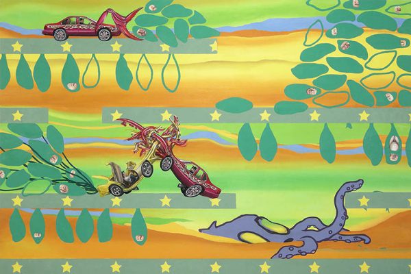 Pod Processing: Don’t Hate the Player; Oil on unstretched canvas; 40”x58”; 2008