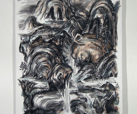 Year of the Boar. Acrylic on canvas, wooden dowels. 30″x17″. 2019.